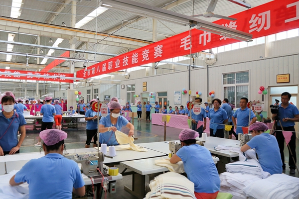 6月17日,高密市第八屆職業(yè)技能競(jìng)賽毛巾縫紉工比賽在孚日集團(tuán)毛巾二廠舉行。本次競(jìng)賽采取了拔尖推薦、隨機(jī)抽取兩種形式,共46名選手參賽。孚日股份總經(jīng)理吳明鳳、綜合管理部經(jīng)理王彥法等領(lǐng)導(dǎo)到競(jìng)賽現(xiàn)場(chǎng)進(jìn)行了觀摩指導(dǎo)。