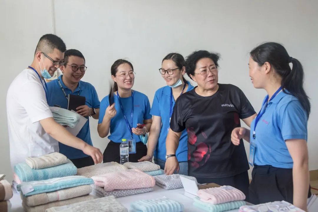 在孚日集團“工廠對接市場”的布局中,毛巾一、二、三廠分別對接亞洲、歐洲、美洲市場,術業(yè)有專攻的提供面向不同消費群體文化的家紡精品。2020年8月3日,三處毛巾工廠的廠長帶領各自團隊,與集團旗下孚日品牌、賽維絲品牌、電子商務等事業(yè)部的營銷、設計團隊會合,共同研究探討以出口精品促進國內(nèi)營銷的思路和方案。孚日集團總經(jīng)理吳明鳳、副總經(jīng)理王聚章出席活動,部分經(jīng)銷商代表應邀參加了活動。