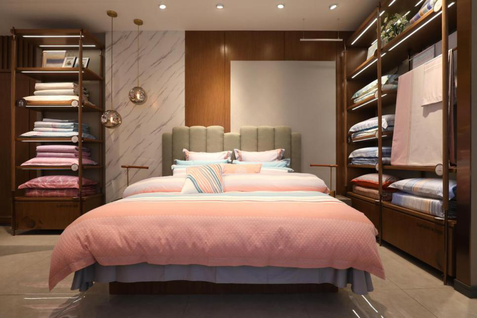 與此同時,在全球新美學生活理念的指引下,孚日家紡還打造了極致專業(yè)的服務體系,每家店都配置了專業(yè)美學顧問,向顧客提供婚房布置、私人訂制、上門試鋪、家居洗護、除螨殺菌等增值服務,與消費者形成更具互動性和依賴性的關系。