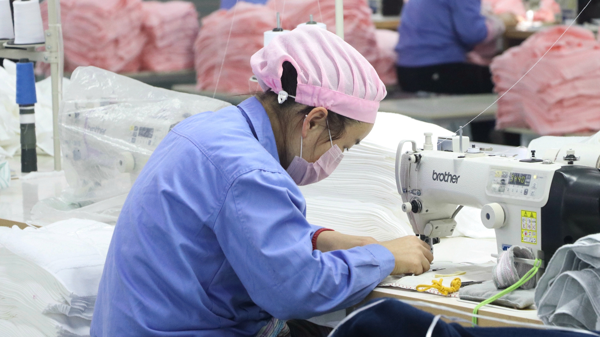 寒冬臘夜,臨近春節(jié),孚日生產車間依然燈火通明,工人們正加緊趕制發(fā)往歐洲的紡織品訂單。