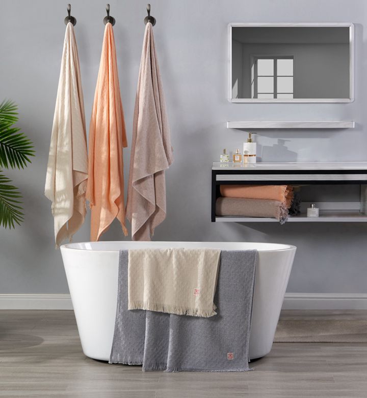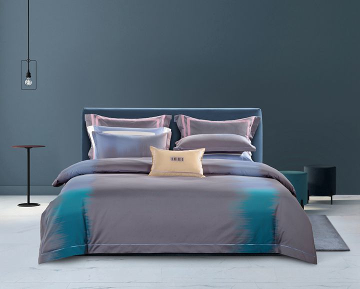 《水墨桑麻》設計靈感來源于極限主義,強調(diào)一種"理性、冷峻、簡約"的藝術風格。產(chǎn)品采用原液著色的有機“竹麗爾”紗線織造而成,通過素色工藝達到肌理豐富的色織效果。產(chǎn)品采用漸變設計,放棄過度裝飾,秉承簡約而不簡單的原則,顏色搭配跟組織相得益彰,演奏出一曲觸感溫柔、貼近自然的和諧樂章。