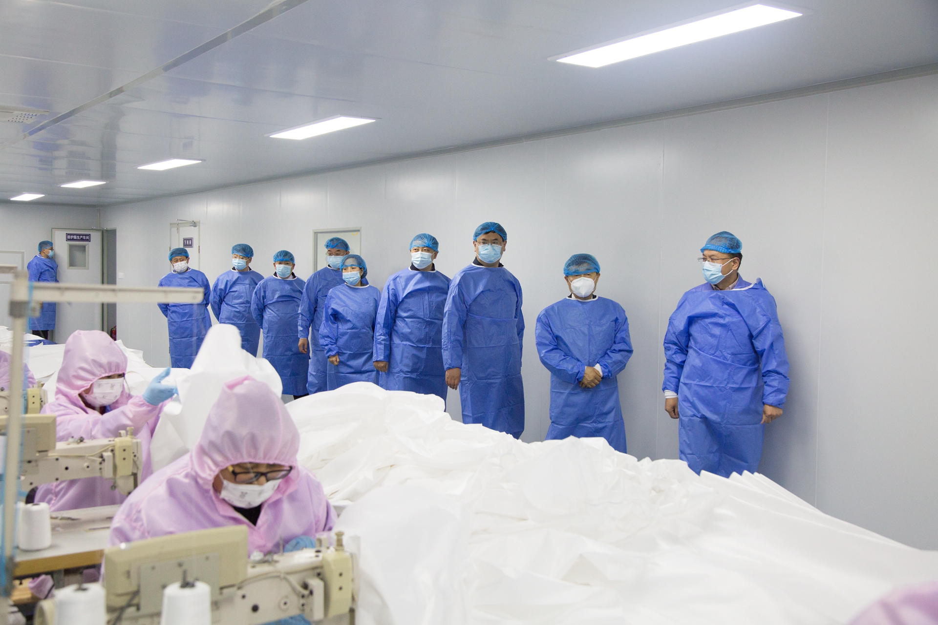 2020年4月20日,山東孚日安防科技有限公司十萬級二類醫(yī)療器械生產(chǎn)車間開始試生產(chǎn)運行。高密市政府副市長張帥和市有關(guān)部門領(lǐng)導(dǎo),在孚日控股集團董事長孫日貴、總經(jīng)理孫勇以及孚日安防總經(jīng)理黃一鳴陪同下,參觀考察了生產(chǎn)車間的運行情況。